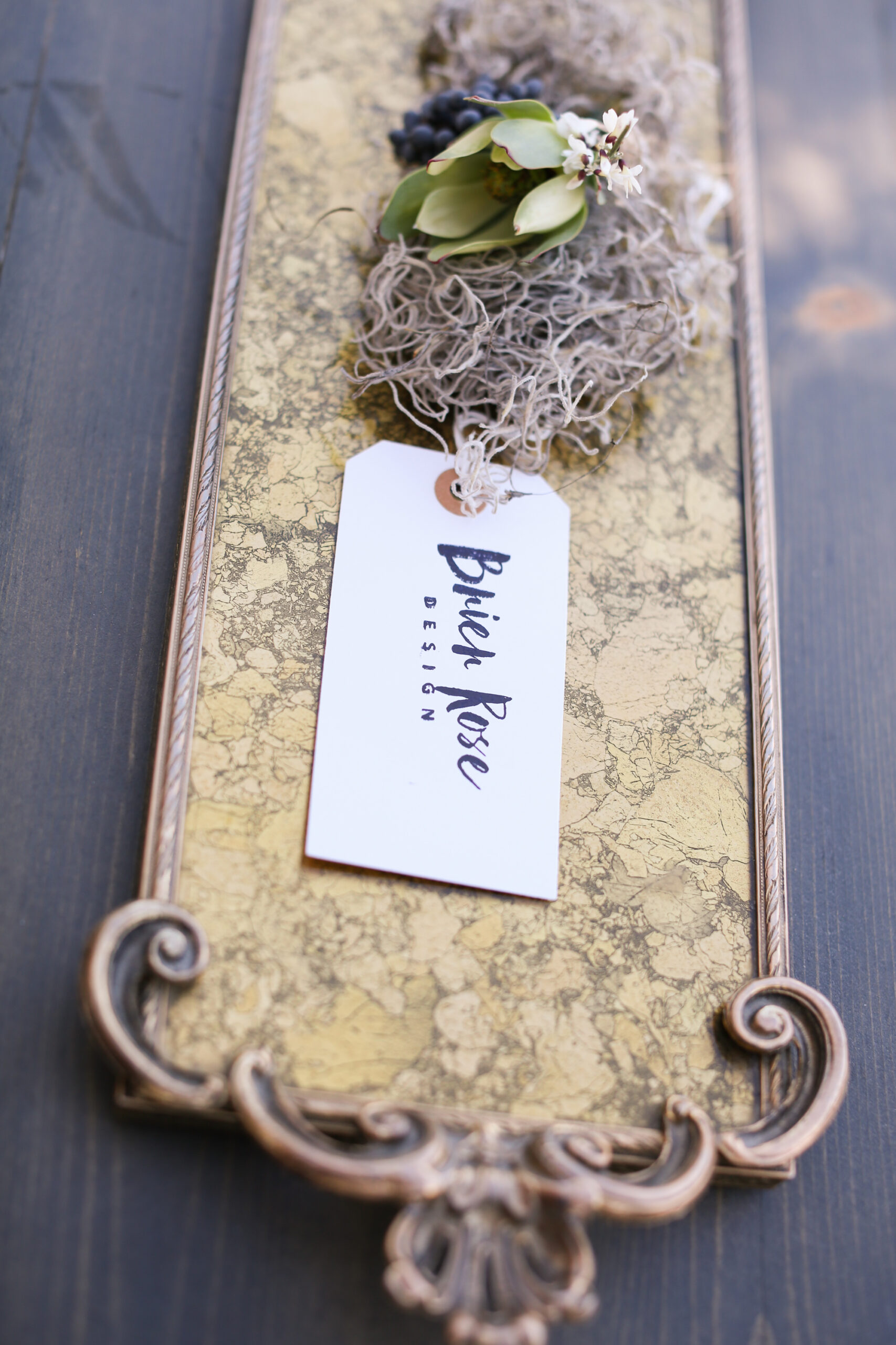 Description: gold metal tray with marble surface