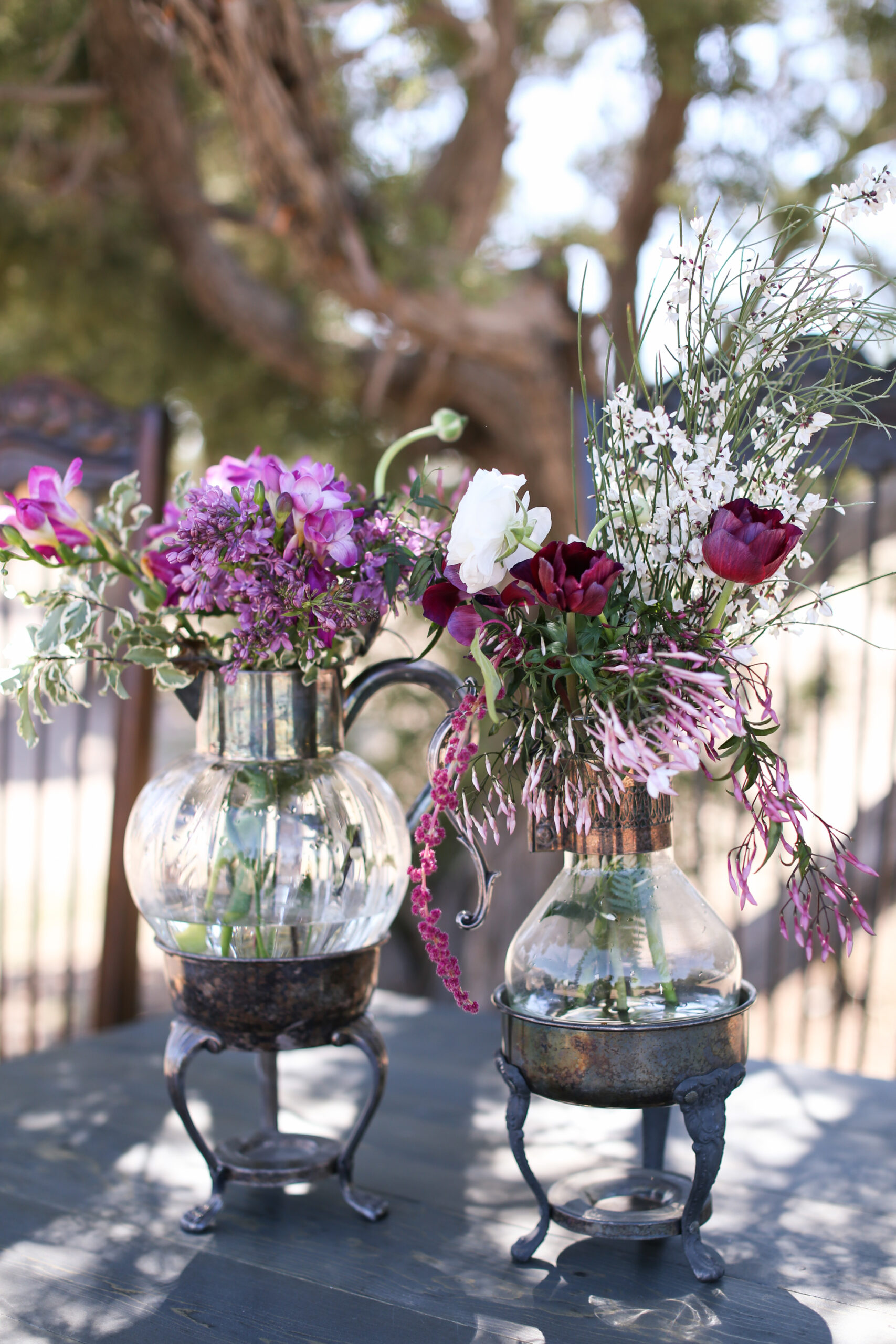 Description: vintage silver and glass coffee and tea pot